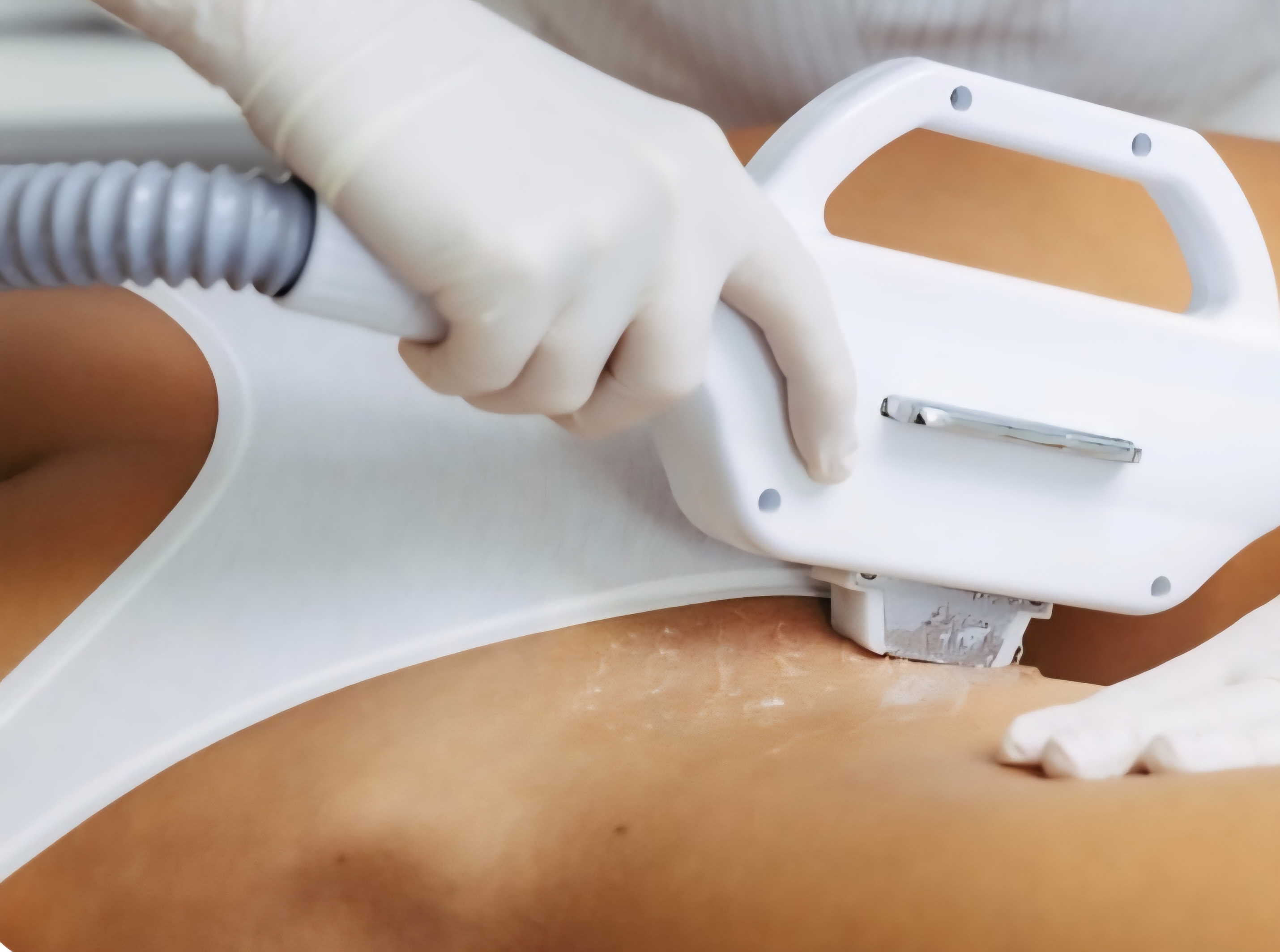 Nie wieder rasieren – dauerhaft glatte Haut! Mit unserem medizinischen 4-Wellenlängen-Laser bieten wir Ihnen eine der modernsten Methoden der dauerhaften Haarentfernung: schmerzarm, schnell und für alle Hauttypen geeignet.